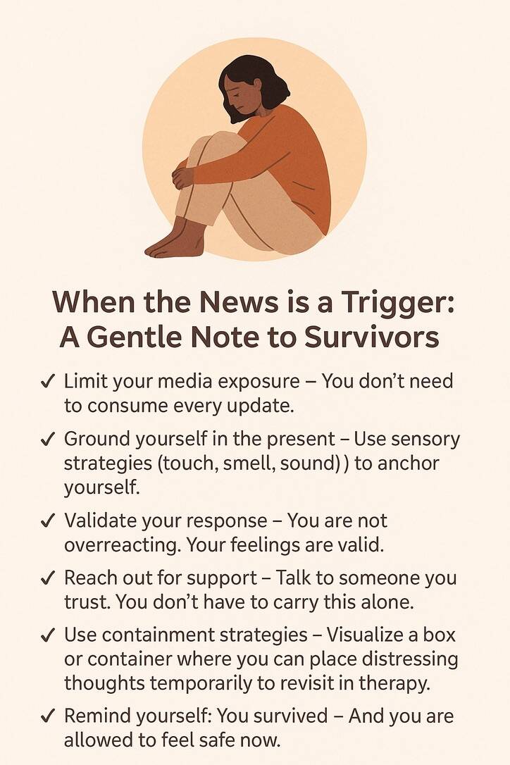 #TraumaAwareness #CSARecovery #PsychologicalSafety #MediaTriggers #TraumaInformedCare #YouAreNotAlone #ChildhoodSexualAbuse #MentalHealthSupport #GroundingTechniques